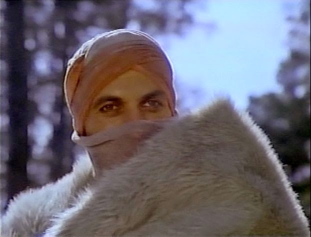 The costume department was on the ball in this flick. The head henchman does his thing wearing a helmet clearly inspired by the cover of Cher’s 1978 album “Take Me Home.”