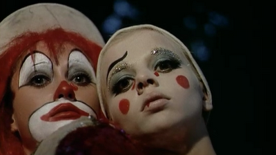 So there’s a lot of blah blah blah from the main vampire about being the last of the line, and lots of aimless walking around, and mooks attacking the chained up nekkid girls and saying “arrrgh” a lot, and some more shots of the countryside, and of green slime, and the clown suits, and the revolvers that have 56 shots in them, and some mild lesbitation, and what does it all mean?