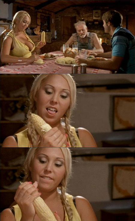 Mary Carey plays with her corn in Pervert! — an act of easily penetrable symbolism.